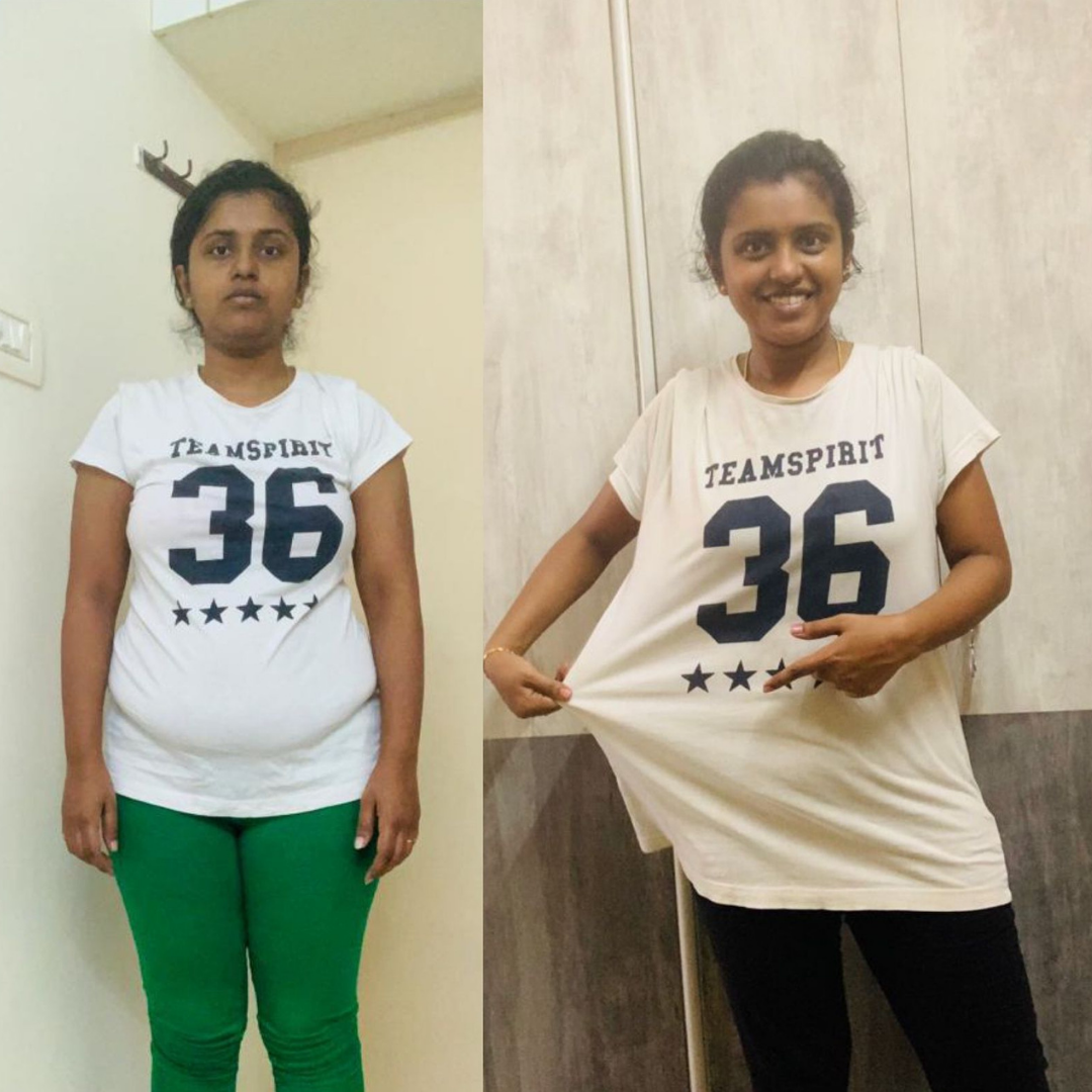 I have lost around 10 kgs and have reached my 1st prepregnancy weight and can fit into all my old dresses. Thank you so much for the wonderful workouts and i started after my second pregnancy....Have come down from using 2xl to Medium size...